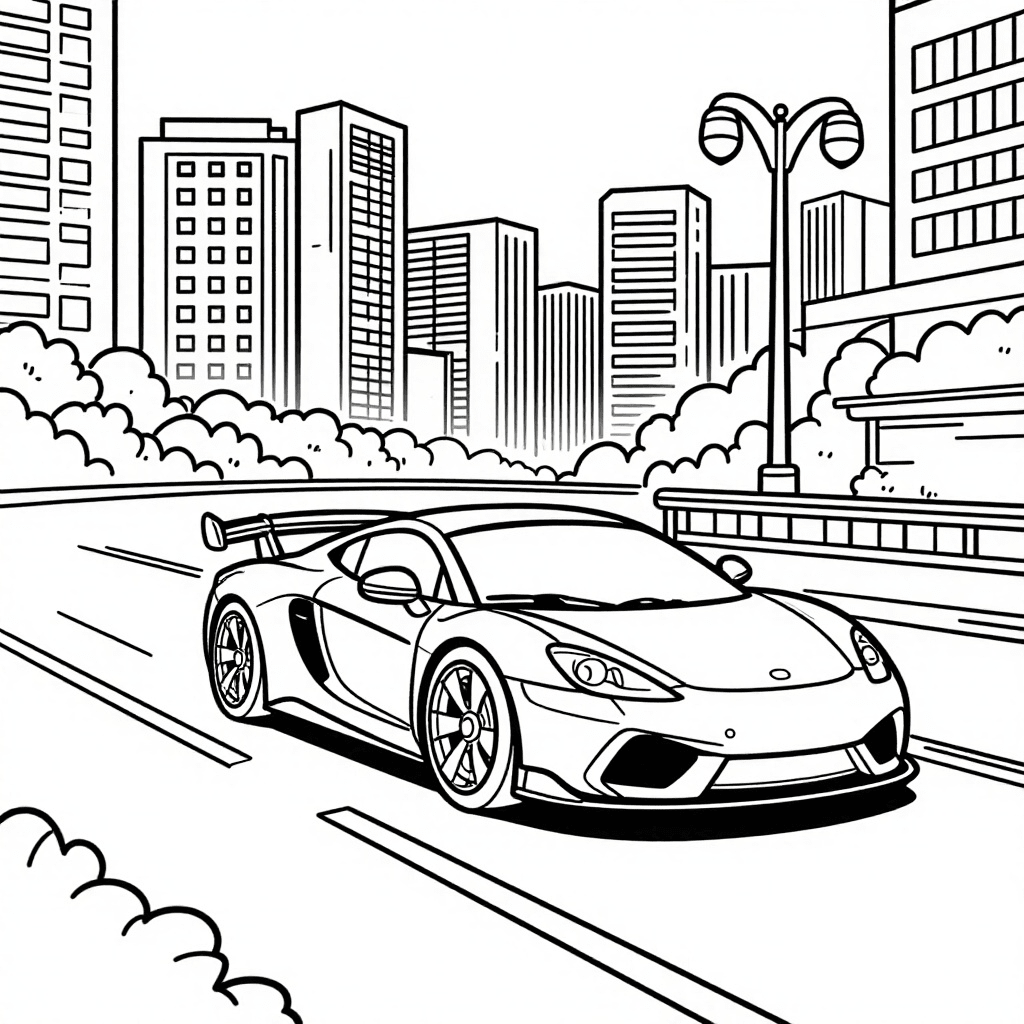 Rasantes Sportauto Stadtbild Malvorlage